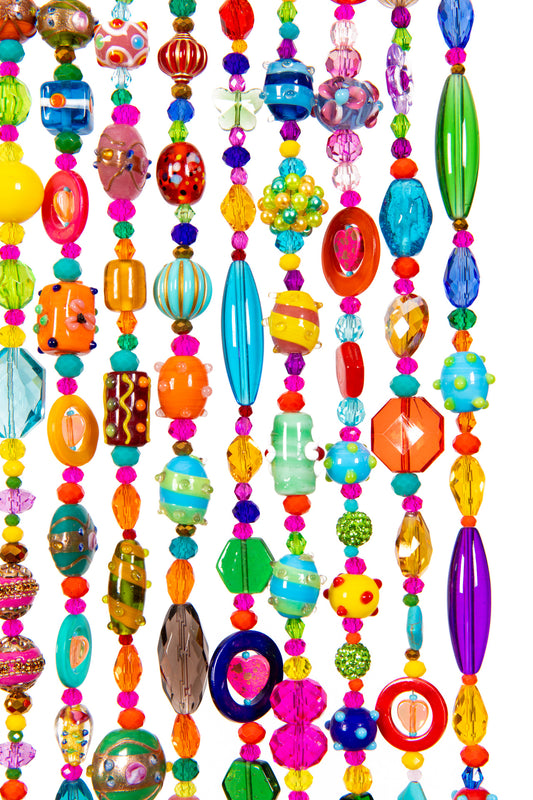 Colorful Beaded Curtain for Doorway -Handmade Boho Glass Bead Door Curtain with Lampwork Beads